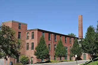 The Walker Body Company, originally the Walker Carriage Manufacturing Company, was a major manufacturing concern in Amesbury during the late 19th and early 20th century. Its factory was located in an area known as "Carriage Hill" due to the large number of carriage builders in the area. Two of its buildings survive: mill #2, a c. 1885 structure built by the Hume Carriage Company, and mill #3, built in 1918 and expanded in 1929. The older building is a three-story brick structure, while the newer one is a wood-frame building designed by the Beverly, Massachusetts firm of Morse & Dickinson. Its wooden construction is unusual in that typical factory construction of the time usually involved brick or other firesafe materials.[2]
