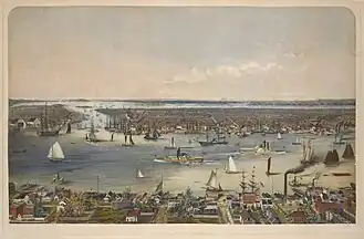 Gabriel Furman, in his Notes Geographical and Historical, relating to the Town of Brooklyn, in Kings County on Long-Island (1824),[12] traces the name from the Dutch "Waal bocht" or "bay (or bight) of the Walloons", referring to the original French-speaking settlers of the local area. Another theory ascribes it to the River Waal, an arm of the Rhine, an important inland waterway in the Netherlands, long referred to as "inner harbor" which would speak to the geographic position of the bay.[13]