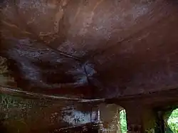 It has been estimated as dating from circa 1760 and has been hewn from soft red sandstone in the Gothic style as a man-made folly or grotto,[17] although the possibility remains that it was an extension of a natural cave.[18] The RCAHMS Canmore site classifies the site as post-medieval and holds no details of the grotto.[19] The original Auchinleck Castle stands upstream of the cave just above the confluence of the Dippol Burn with the River Lugar.