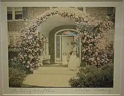 It was on these bicycle rides in the countryside that Nutting started taking photographs.[2] In 1904 he opened the Wallace Nutting Art Prints Studio on East 23rd Street in New York. After a year he moved his business to a farm in Southbury, Connecticut. He called this place "Nuttinghame". In 1912 he moved the photography studio to Framingham, Massachusetts, in a home he called "Nuttingholme".[2] That year he published a catalog of prints that was 97 pages and included about 900 images.[3] By 1915, Nutting claimed to be earning $1,000 per day.[3]