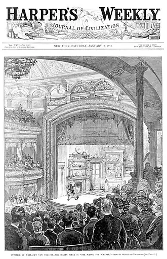- ^ "Wallack's New Theatre" The New York Times December 4, 1881. Details at "Wallack's Uptown House" The New York Times February 8, 1881. The White property was supplemented by two row-houses and later a third (29-33 West 30th Street), which were demolished to make room for the stage, except that half of each, facing the street, was carefully preserved for dressing rooms.