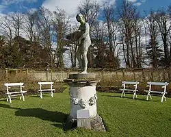 The life-size statue of Venus de' Medici stands on a drum pedestal about 1 metre (3 ft 3 in) high. The pedestal has a moulded base, and has festoons and a moulded cornice. It is grade II* listed, and dates from the early 18th century.[5]