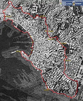 The length of the “New Walls” reached 19,560 meters, enclosing an area of 903 hectares (nearly five times the 197 hectares included in the ”old walls” until the 16th century).[2]