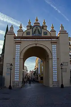 In the 18th century the gates were remodelled. The Puerta del Arenal was rebuilt, and a small chapel was opened on the right side of the Postigo del Aceite, where a baroque altarpiece with the image of the Immaculate Conception (patron of barrio del Arenal) was placed, designed by Pedro Roldán; finally the Puerta de San Fernando was raised to the height of the Royal Tobacco Factory.