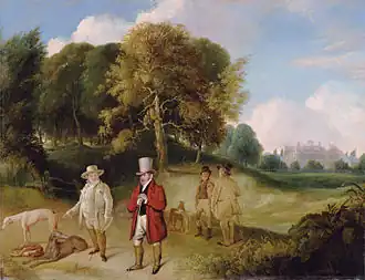 Fawkes was also a keen agriculturist. He did much towards the improvement of his estates, and was successful as a breeder of cattle, his shorthorns being well known. With Jonas Whitaker of Burley-in-Wharfedale and the Rev. J. A. Rhodes of Horsforth he founded the Otley Agricultural Society, one of the first of its kind in England. The park which he formed at Caley Hall was stocked with red and fallow deer, zebras, wild hogs, and a species of deer from India.[3]