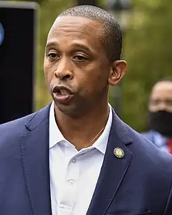 Walter T. Mosley III is an American politician and civil servant from the state of New York. A Democrat, Mosley represented New York's 57th State Assembly district from 2013 to 2021; the district included the Brooklyn neighborhoods of Fort Greene, Clinton Hill, Prospect Heights, as well as portions of Crown Heights and Bedford-Stuyvesant.[1][2] In 2020, Mosley lost a Democratic primary to Phara Souffrant Forrest.[3] Mosley has served as the New York Secretary of State since 2024.