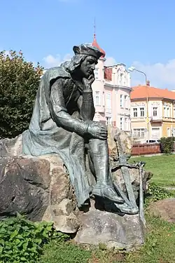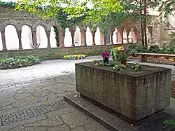 Von der Vogelweide died about 1230, and was buried at Würzburg, after leaving instructions – according to the story – that the birds were to be fed at his tomb daily. His original gravestone with its Latin inscription has disappeared, but in 1843 a new monument was erected over the spot, called the Lusamgärtchen (Little Lusam Garden), today sheltered by the two major churches of the city.[8]