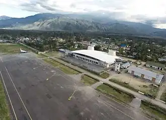 Wamena Airport (Indonesian: Bandar Udara Wamena) (IATA: WMX, ICAO: WAVV) is an airport serving the town of Wamena, Jayawijaya Regency, Highland Papua, Indonesia. The airport also serves the neighboring Lanny Jaya Regency and Tolikara Regency. It is currently the only airport in the highland region of Papua that can accommodate narrow-body aircraft such as the Boeing 737 and C-130 Hercules.