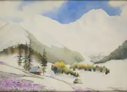 Wanda Gentil-Tippenhauer realized watercolor and tempera motifs inspired by the landscapes of the Tatra Mountains (view of Giewont) and genre scenes from Podhale or Polish Highlands. Sometimes she painted flowers and religious scenes.