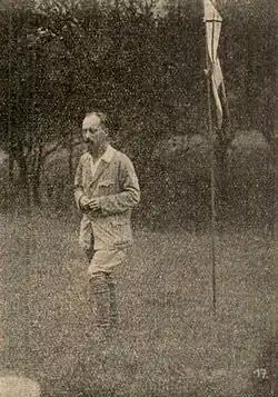 The Wandervogel was officially founded on November 4, 1901, by Karl Fischer (1881–1941) in Steglitz—a suburb of Berlin—under the name "Wandervogel Committee for Schoolboy Excursions" (Wandervogel, Ausschuß für Schülerfahrten). Fischer formed the committee with four of his friends, along with four local writers and a physician.[6] This group functioned as a legal and financial sponsor, but they did not participate in the movement's activities, which were directed by Fischer himself under the title Oberbachant.[4] At the time, Prussian law prohibited young people from establishing their own clubs or joining extracurricular groups. Fischer therefore presented the new association to parents and Prussian authorities as a respectable hiking club. A former teacher at the Steglitz Gymnasium, the reform pedagogue Ludwig Gurlitt (1855–1931), helped secure official recognition from the Prussian Ministry of Culture by submitting a positive report. Fischer had been a devoted follower of Hoffmann-Fölkersamb, his right-hand man on numerous treks, and he eventually assumed leadership when Hoffmann-Fölkersamb left Berlin at the end of 1899 to pursue a diplomatic career in Constantinople.[11] After failing his Abitur (school-leaving exams) twice, Fischer had to wait until 1901 to devote himself fully to the movement, at the expense of his studies in law and Sinology. By 1903, Wandervogel groups had already formed in Berlin, Posen, Munich, Hamburg and Lüneburg, and they were regularly organizing hikes.[4]