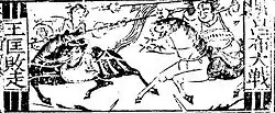 ![]() Wang Kuang (left) fleeing from Lü Bu in a Ming dynasty illustration from Sanguo zhizhuan pinglin (三國志傳評林) | |