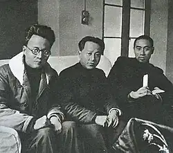 During this period, the CCP suffered major defeats in both urban and rural areas against the KMT and made a strategic retreat in the Long March. At the Zunyi Conference, Wang and the 28 Bolsheviks lost the support of key party and Red Army leaders; Bo Gu, Zhou Enlai and Otto Braun were criticized for their poor strategy.[11][12] Zhang Wentian succeeded Bo Gu as provisional party leader.[13] Mao emerged from Zunyi as the politburo's dominant member with the support of the army and his opponents discredited.[11][12]