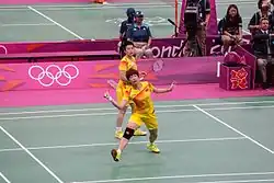 At the 2012 Summer Olympics, Wang and her partner, Yu Yang, along with Jung Kyung-eun and Kim Ha-na, Ha Jung-eun and Kim Min-jung of South Korea, and Meiliana Jauhari and Greysia Polii of Indonesia, were disqualified from the competition for "not using one's best efforts to win a match" and "conducting oneself in a manner that is clearly abusive or detrimental to the sport", following matches the previous evening during which they were accused of throwing the match.[8][9] Yu Yang and Wang Xiaoli played against South Korea's Jung Kyung-eun and Kim Ha-na, and it has been suggested that both teams wanted to lose in order to secure an easier draw,[10] although Yu claimed "she and her partner were just trying to conserve their strength for the knockout rounds".[11]