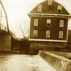 Sylvanus and Cathryn Blackburn moved to the War Eagle Valley in 1832 and built a mill next to War Eagle Creek.[1] In 1848 a flood pushed the mill into the river, washing it downstream and completely destroying it.[2]