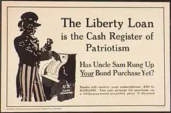 Washington felt that a greater bureaucracy was needed to help with mobilization.[6] The government raised taxes which paid for half of the costs of the war and borrowed money in the form of war bonds to cover the rest of the bill.[4] "Commercial institutions like banks also bought billions of dollars of bonds and other treasury paper, holding more than $24 billion at the war's end."[6] The creation of a handful of agencies helped funnel resources towards the war effort. One prominent agency was the War Production Board (WPB), which "awarded defense contracts, allocated scarce resources – such as rubber, copper, and oil – for military uses, and persuaded businesses to convert to military production."[4]