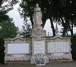 | The monument aux morts at Guise. | Guise | The Guise war memorial features a work by sculptor André Joseph Allar. Allar depicts a woman, meant to represent Guise, who comforts a child.