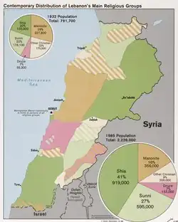 - ^ The Tripartite Accord was an attempt by Syria to end the civil war, and to emphasize its special relationship with Lebanon. The agreement included Berri of the Shiite Amal, Walid Jumblatt of the Druze Progressive Socialist Party and Elie Hobeika of the Christian Lebanese Forces (LF), three of Lebanon's most powerful militias at the time. Hezbollah's opposition was due to the inclusion of the LF, whose members it perceived as "Israeli agents", though its rejection of the accord was merely political.[47]