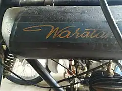 Auction sales[25] also mention 2.5 hp Waratah machines, although they may also be of earlier manufacture. An advert in the Townsville Daily Bulletin describes a Waratah machine with a Villiers Two-Stroke engine and two speed gearbox that gives 110 mpg and that "easily climbs Stanton Hill on top gear".[26] The advert shows a picture of a machine with enclosed primary chain and a belt drive to the rear wheel, an angular fuel tank slung under the top frame tube, no obvious electrics and no suspension other than seat springs.