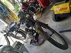 • 2.5 hp Villiers engined machine,[41] possibly 350 cc. Sun saddle tank frame and Brampton forks.[4]