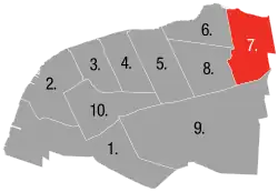 ![]() Map of the 10 Wards of Windsor, Ontario. Ward 7 is highlighted in red. | |