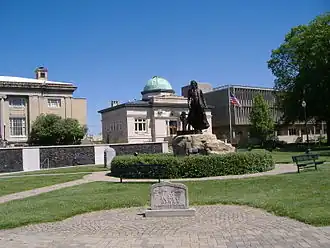 Warder Park is located in Jeffersonville, Indiana on Court Avenue. This park has been a part of the community since the mid-19th century, when it had a bakery to produce hardtack to Union soldiers during the American Civil War.[1] The park wasn't established officially until the year 1881 and is named after then Mayor Luther Warder.[2] Warder had wanted the site for a new city hall, but the city council chose a site between Spring and Pearl on the north side of Market Street for the city hall, and named the park after Warder as a gesture of goodwill.[3] A Carnegie Library was built in 1903.