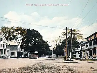 The Ware & Brookfield Street Railway Company (WBSR), originally chartered as the Hampshire & Worcester Street Railway Company, was a small interurban electric streetcar system that operated from 1901 to 1918 in central and western Massachusetts, connecting the towns of Ware, West Brookfield, Gilbertville, Hardwick, and New Braintree. With roughly 12 to 14 miles (19 to 23 km) of track, the railway played a pivotal role in linking the street railway networks of eastern and western Massachusetts as the final link in the first continuous streetcar corridor between Boston and Springfield.