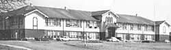 ![]() A bird's eye view of the mill in the 1950s. Katherine Hall is seen just behind the mill. | |