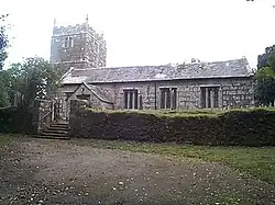 The parish church (dedicated to St Bartholomew) is partly Norman and partly 15th century in date. It formerly had a spire but this fell down in 1818 and was not rebuilt.[4] The church consists of a chancel, nave and south aisle with a granite arcade.[5] From 1931 until his death the Rev. Frederick W. Densham was Rector of Warleggan: he was unworldly and eccentric.[6] The film A Congregation of Ghosts is based on his life. There is a Cornish cross in the churchyard; its original location is unknown but it was brought here from Carburrow.[7] In 1858 it was found on Warleggan Down between Carburrow and Treveddoe; later in the 19th century it was moved to its present position.[8]