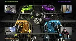 Warlords is a 1981 action video game developed and published by Atari, Inc. for arcades.[3] The game resembles a combination of Atari's earlier games Breakout and Quadrapong. Up to four players are able to play the game at the same time and the "castles" in the four corners of the screen are brick walls that can be destroyed with a flaming ball.
