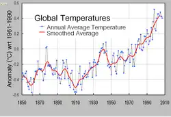 102. ^ "Average World Temperature Since 1850". Reddit, "DataIsBeautiful" subreddit. 2016-06-15. Archived from the original on 2016-06-15. Data source: University of East Anglia Climate Research Unit (CRU) (archive).