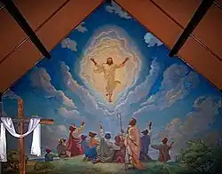 Sallman also created a lesser-known work called The Ascension of Christ. This painting, which is owned by and located at the First Covenant Church in Iron Mountain, Michigan, measures 20 feet wide by 23 feet high. The painting was done in one of the large meeting rooms on the campus of North Park College (now University) in Chicago and shipped in two large rolls to Iron Mountain, where it was installed by the men of the church on the wall above the choir loft. Sallman came to Iron Mountain to put finishing touches on the painting and attend the dedication at First Covenant Church in May, 1952. It is believed to be the largest painting done by the artist.