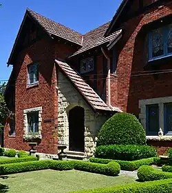 In 1888, the public servant and patron of exploration, Frederick Eccleston Du Faur, built his house Pibrac in Pibrac Avenue. The house was designed by John Horbury Hunt, a Canadian architect who settled in Australia and favoured the Arts and Crafts style, as well as the North American Shingle style, which he introduced to Australia. Later alterations were carried out by B.J. Waterhouse. The house is built predominantly of timber, with extensive use of timber shingles, on a sandstone base. It is considered a good example of Hunt's work and is listed on the Register of the National Estate.[5]