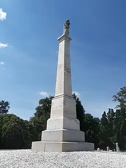 In 1998, Warrenton's "Black Horse" chapter of the United Daughters of the Confederacy erected and dedicated a monument in the Warrenton Cemetery to 520 Confederate soldiers buried there, many of whom died during the First and Second Battles of Bull Run.[36] This new monument altered a pre-existing Confederate obelisk built in 1877 by building a granite wall around the obelisk engraved with those 520 names.[37] The then-mayor's wife spearheaded fundraising for the monument from private organizations and the United Daughters of the Confederacy itself, of which she was a member.[36][37] This monument still remains.