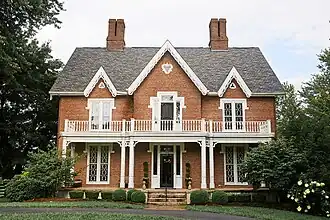 Warrenwood Manor is a historic property located in Danville, Kentucky, USA. The manor was built in 1856 by Samuel and John Fourche Warren, sons of the Revolutionary War veteran and legislator William Warren.[1] The Warren family moved several times before finally locating upon the present site. The property has been occupied by prominent owners including the Reed, Warren and Shelby families, in the order in which they are named.[1] The architecture of the home includes diamond shaped window panes across the front, a wide hand carved door and window facings and massive enameled white mantels.[1]