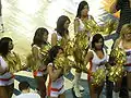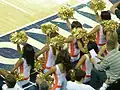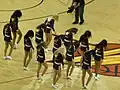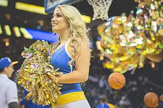 The Golden State Warrior Girls are an all-female National Basketball Association Cheerleading dance squad that performs in support of the Golden State Warriors during home games at Chase Center in San Francisco, California. The dance team consists of 18 women who also serve as ambassadors of the Warriors organization.[1][2] The squad's dance style is primarily hip-hop and jazz although other styles are often incorporated into their dance routines. The dancers typically perform during two of the four regulation quarters. The squad also regularly performs during the opening and half-time ceremonies, as well as team time-outs. Typical dance routines last around 60 to 90 seconds. Over the course of the season the dance squad will perform at 43 home games including two preseason games.[3] The squad also performs at playoff games when their team qualifies. In addition to their performances, the Warrior Girls are regular attendees of season ticket holder events which take place throughout the season. At these events, they interact with fans, assist with raffles, and sign autographs on behalf of the Warriors franchise.
