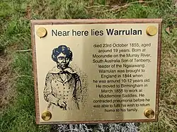 In around 2023, a brass marker was erected near the site of Warrulan's grave. On 7 October 2023, Mark Koolmatrie, an elder of the Ngarrindjeri people, visited Warstone Lane Cemetery to perform a traditional ceremony "to take Warrulan's spirit back home to the Murray River".