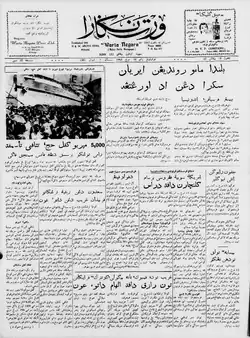 Warta Negara was first published in Penang on 3 September 1945 by Ahmad Jelani, a former staff of the Malayan-Japanese newspaper Penang Shimbun.[3] The newspaper was printed by the Warta Negara Press from equipment purchased from former-Japanese printing houses. Warta Negara was the first newspaper published in Penang after the end of the Second World War. The daily used the slogan "Julung-julung Akhbar Harian Melayu diterbitkan dalam masa lepas Perang" ("The first Malay daily after the War").[1][2] Another slogan adopted was "Akhbar dari rakyat untuk rakyat" ("The people's daily for the people"). The newspaper was published entirely in Jawi script, and provided translated articles from English sources.[3] In 1964, the newspaper was acquired by Utusan Melayu Press.[2]