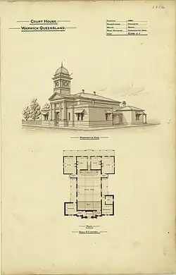 Warwick Court House and Police Complex is a heritage-listed courthouse at 88 Fitzroy Street, Warwick, Southern Downs Region, Queensland, Australia. It was designed by John James Clark and built from 1885 to 1914 by William G Conley. It was added to the Queensland Heritage Register on 21 October 1992.[1]