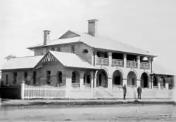 The Warwick Court House and Police Complex comprises a group of timber and stone buildings erected from 1885. The town of Warwick was gazetted in 1847, and a police unit is recorded as being established in Warwick from this time. A shepherds hut on Canning Downs is believed to have been used as the first police station and barracks. In 1850 a township was laid out, and allotments auctioned. Warwick was incorporated as a municipality (the Borough of Warwick) in 1861. Indications are that Albion Street was the main centre of Warwick during the early development of the town. A reserve was set aside in Albion Street, and public buildings erected on this site included a court house (1862) and police station, post office (late 1860s) and telegraph office (front portion of the court house, erected 1875).[1]