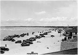 In 1959, the beach was designated as a "Crown beach", which was the precursor to the establishment of Wasaga Beach Provincial Park. The province began expropriating beachfront properties to create a continuous belt of parkland along the full length of the beach, save for keeping part of the main beach area for commercial uses. This proved controversial; so the province scaled down plans and settled for separated parks, which are today's Beach Areas 2–6. Driving and parking on the beach was previously permitted and popular, but in 1973 the province took cars off the beach.[18] However, a paved beachfront street, Beach Drive, was constructed along Beach 1 shortly thereafter.
