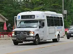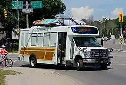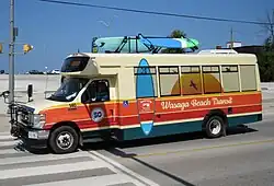 Wasaga Beach Transit is a public transportation system for the resort town of Wasaga Beach, Ontario, Canada. Using municipally owned minibuses, it was originally operated by Georgian Coach Lines from 2008 to 2014 and then contracted to Sinton-Landmark.[1] Service expanded from one route which was started in July, 2008 to two in the summer of 2009, because the bus system grew faster than anyone expected.[2] On November 21, 2016, Wasaga Beach Transit got a connection with the new Clearview Public Transit, which runs to the nearby community of Stayner,[3] and on August 6, 2019, the service also received a connection with the also-new Simcoe County LINX system. The latter change replaced the old Collingwood-Wasaga Link bus running between Wasaga Beach and Collingwood,[4] and also provides transit service to the City of Barrie.[5]