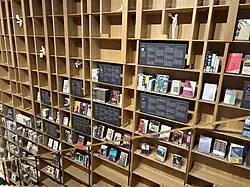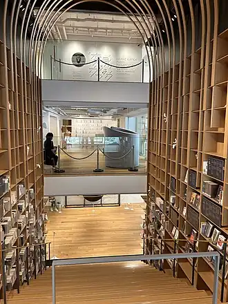 The library portion of the building hosts over 3,000 of Murakami's novels in various editions and translated in over 50 languages.[4][5] It also shelves books "organized by their relationship to Murakami's novels."[3]