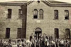 On the morning of March 23, 1975, the 1924 high school building caught fire and burned to the ground. The school board quickly set up an election for April 17, 1975 to replace the building on a bond in excess of $200,000.[16] The bond passed with more than the two-thirds majority needed and a new high school building was built and in service the following school year.[17] By 1980 a separate middle school building had also been added to campus and in 1983 a new gymnasium was constructed; in 1982 the gymnasium that had been attached to the 1924 high school building was destroyed by fire. By the end of the 1990s increased enrollment, especially from the rural areas of the district, necessitated the need of a larger and more modern high school. With the construction and opening of this new high school building in the early 2000s, the 1975 high school building became the district's new middle school building and elementary school students occupied both the 1981 middle school building and the 1965 elementary school building, which is currently the oldest building on a campus that dates its original educational origins to the 1888 bond issue.