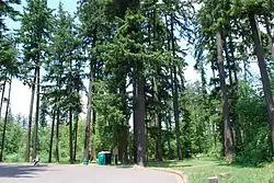 Washburne State Wayside was a state park 4 miles (6 km) northwest of Junction City, in the U.S. state of Oregon.[3] Administered by the Oregon Parks and Recreation Department, the wayside served as a rest stop for travelers on Oregon Route 99W and an interpretive center for the Applegate Trail.[4] The state bought the land for the park in 1926 from William C. and Mae E. Washburne.[2] It was located on the border between Lane and Benton counties.[4]