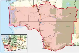 Washington's 3rd congressional district encompasses the southernmost portion of Western Washington. It includes the counties of Lewis, Pacific, Wahkiakum, Cowlitz, Clark, and Skamania; as well as a small portion of southern Thurston county.