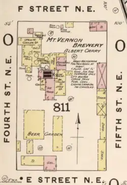 ![]() The Washington Brewery Company around 1910 looking southwest toward the Capitol | |||||||||||||||||||