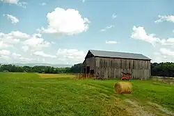 According to the U.S. Census Bureau, the county has a total area of 330 square miles (850 km2), of which 326 square miles (840 km2) is land and 3.3 square miles (8.5 km2) (1.0%) is water.[8] The western portion of the county is situated in the Ridge-and-Valley Appalachians, which are characterized by long, narrow ridges roughly oriented northeast-to-southwest. The county's most prominent Ridge-and-Valley features rise in the vicinity of its northwestern border with Hawkins and Sullivan counties. The eastern portion of the county lies within the Blue Ridge Mountains, specifically the Bald Mountains (south of the Nolichucky River) and the Unaka Range (north of the Nolichucky).[9] Buffalo Mountain, a long ridge that straddles much of Washington's eastern boundary, contains the county's highest point, 3,520-foot (1,070 m) Pinnacle Knob. The Cherokee National Forest protects much of the extreme eastern part of the county. Sampson Mountain, which rises in the southeastern part of the county, is home to a designated wilderness area.