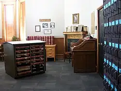 The Works Progress Administration praised the courthouse during a 1936 audit, mentioning the tidy offices and public access to records. The WPA also warned that record space was dwindling, as the vaults were almost full. This was partially due to heroic actions during the Civil War, when county records were stored in a cave near Black Oak while the second courthouse was burned. As a result, Washington County held more records than most counties in the area.[4] A 1945 proposal to construct a new courthouse was voted down by citizens who pointed out that Washington County still owed money to George Donaghey from the 1904 construction, and felt the current building was not being maximized.