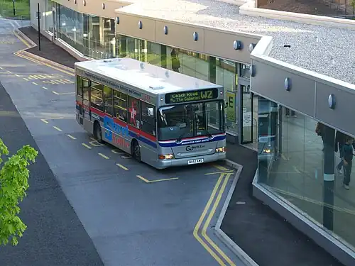 The original bus station was demolished and re-built in the late 2000s, as part of a £2.5 million refurbishment project. The new facility opened in October 2008.[2]