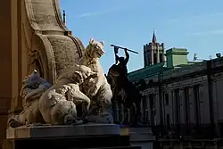 Under British control, the position was renamed Fort Knyphausen for the Hessian general Wilhelm von Knyphausen, who played a major part in the victory;[20]: 326 [5] its lesser fortification at present-day Fort Tryon Park was renamed for Sir William Tryon, the last governor of New York before it was taken back by the Continental Army.[12]: 158 The park holds a plaque dedicated in 1909 to Margaret Corbin, an American who took over at her husband's cannon after his death in the Battle of Fort Washington;[21] she was also honored with the naming of Margaret Corbin Drive in 1977.[10]